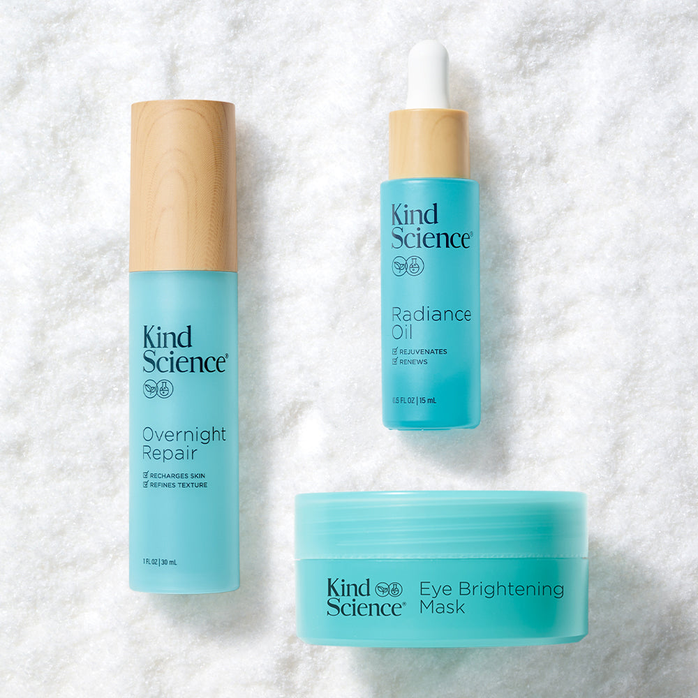 Target loss of radiance, dullness, and those hard-to-treat under eye dark circles with this best-in-class trio of Overnight Repair, Radiance Oil and Eye Brightening Mask that instantly brighten and refresh tired-looking skin and eyes to reveal a visibly smoother, more vibrant and youthful appearance.